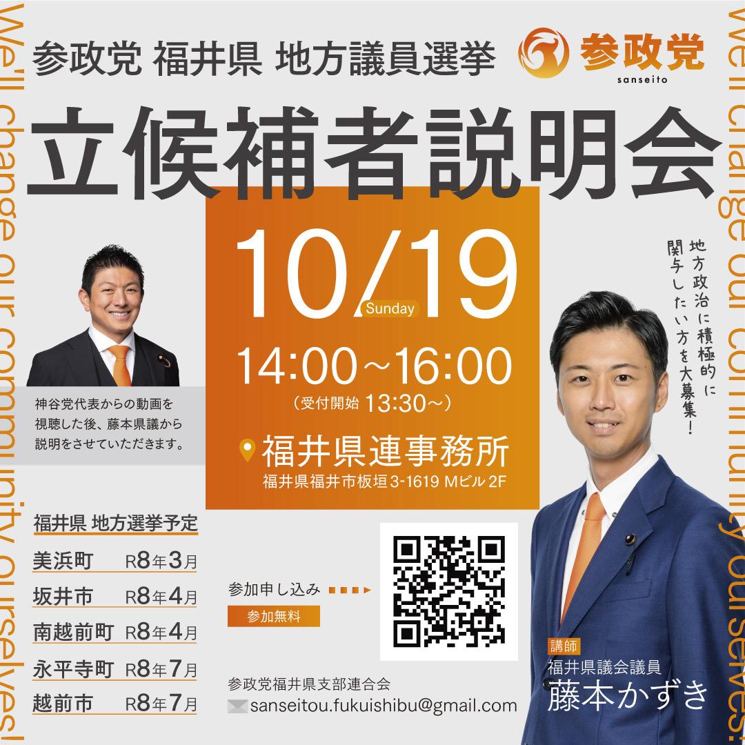 福井県でも、ほとんどの党員・サポーターは1,2年前は政治活動未経験者でした。しかし、現状をただ見ているだけでは何も変わりません。次世代のために日本を良くするために、今よりほんの少しでも良い世の中を実現するために、一緒に活動しませんか?